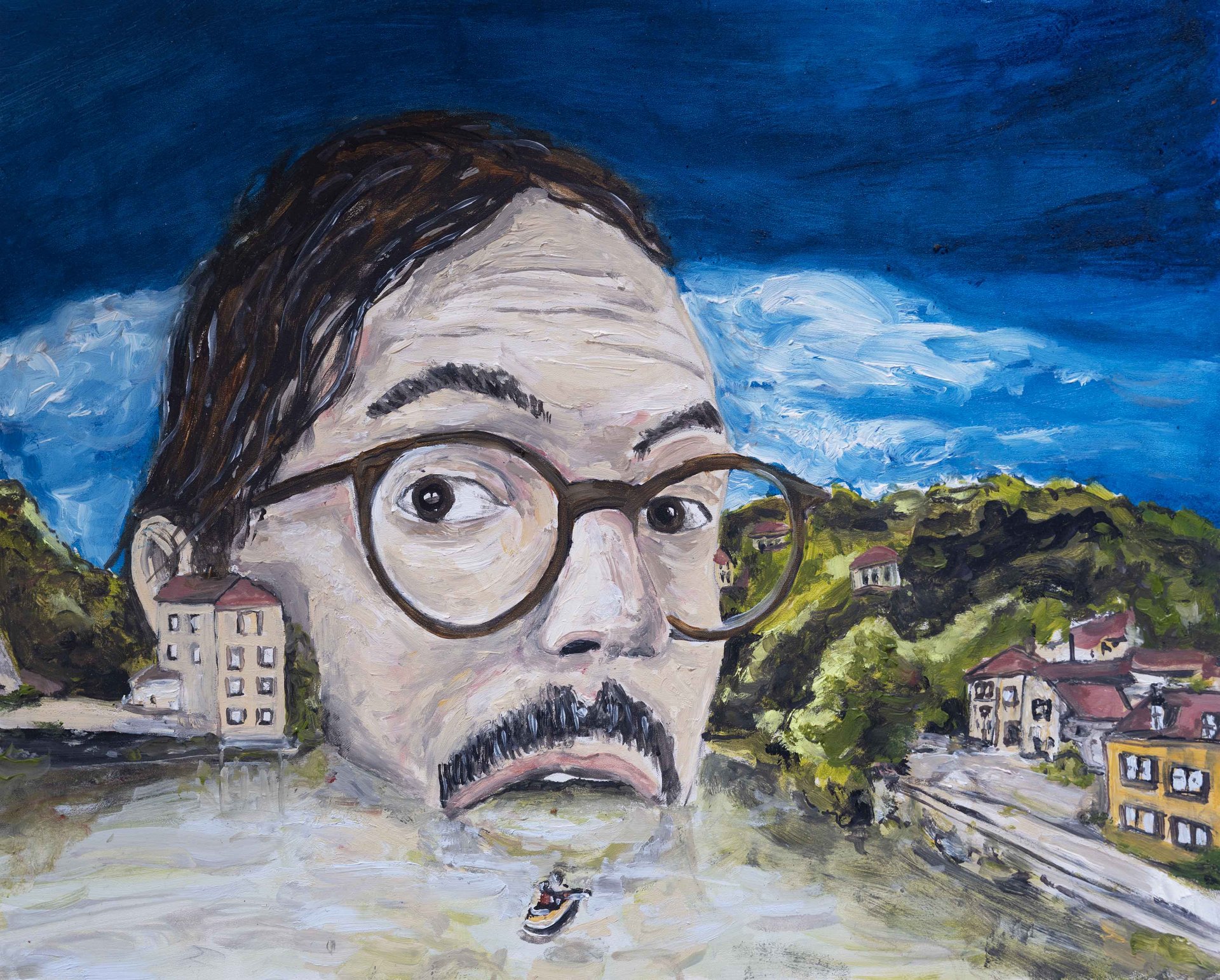 Big Fish (selfportrait) •Oil an Acrylic on Canvas • 30x 45 cm • 2023