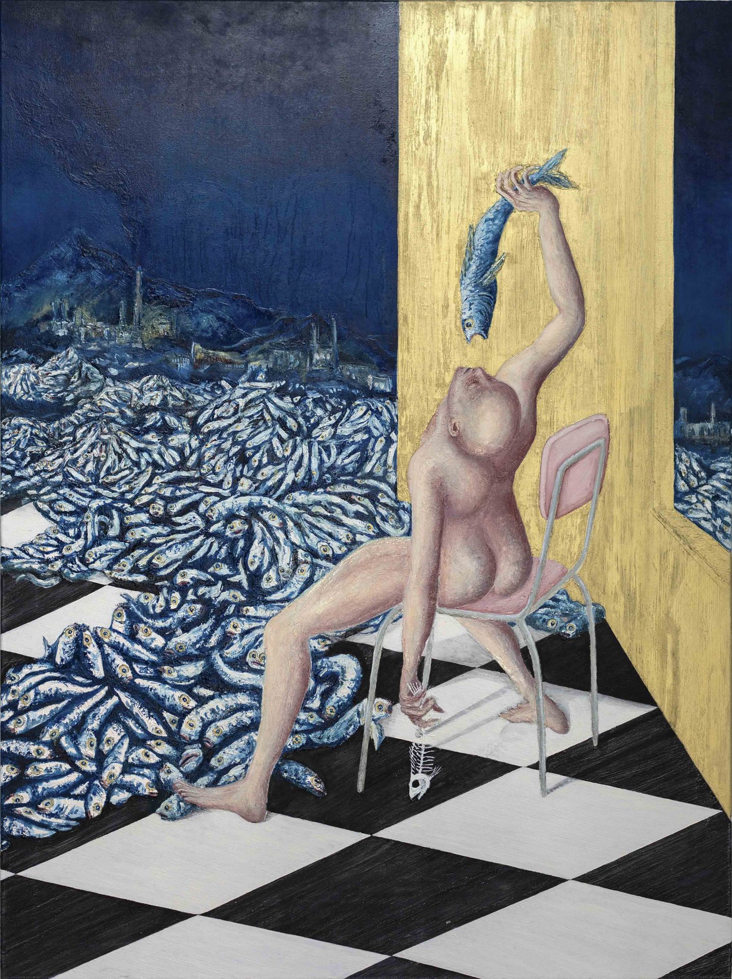 It get fisy • Egg tempera, oil and gold dust on canvas • 145 x 115 cm • 2019